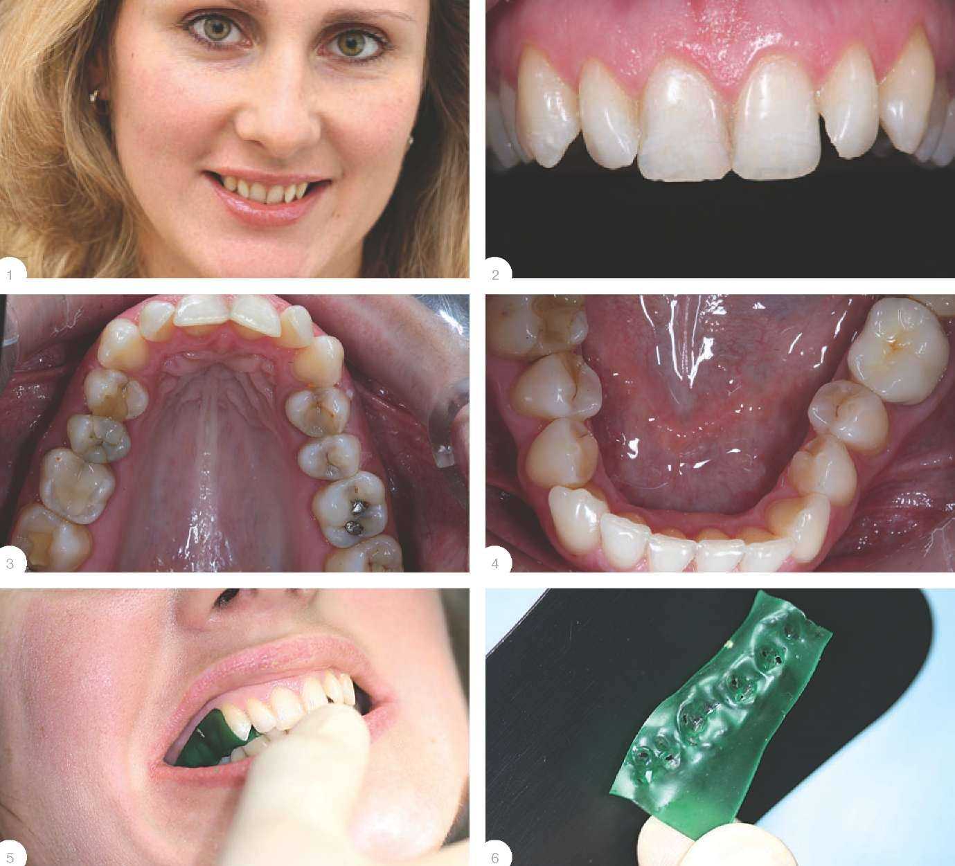 В представленном клиническом случае адекватное лечение позволяет достичь прекрасных функциональных и эстетических результатов - за счет использования виниров в силу их высокой эстетики, отличного краевого прилегания и полируемости - а соответственно и минимальной реакции па-родонта. Пародонт пациентки находился в здоровом состоянии, поэтому процесс эстетической реабилитации был значительно облегчен. Т.к. изменения цвета не планировалось, препарирование проходило на уровне десны. По словам организаторов работа, показанная на мастер-классе, была вполне обычной для «Арт Ораль» - разумеется, с поправкой на определенную нервозность, которая неизбежна при работе под прицелом телекамер и на глазах у зрителей. Планирование Как известно, лучше семь раз отмерить но один раз отрезать. Следуя народной мудрости, время на семинаре было поделено схожим образом, - основное количество времени было отдано именно планированию вмешательства. Из трех дней, в течение которых проходил курс, один был целиком посвящен именно ему. На этап планирования обычно отводится до 90% времени, а оставшуюся часть занимает техническое воплощение работы. Д.М. Никоненко: «Когда есть фундамент, когда план начерчен, работа выполняется легко и быстро, движение происходит по намеченной схеме». Перед тем как бор стоматолога коснется твердых тканей зуба, нужно проделать длинный путь, коим является диагностика, включающая в себя опрос, осмотр, функциональные методы обследования, анализ окклюзии, определение центрального соотношения/ центральной окклюзии, диагностические оттиски, диагностические модели, установку их в артикулятор, анализ моделей в артикуляторе, определение цвета, клиническую фото-документацию (без этого даже наша статья не смогла бы должным образом быть проиллюстрированной). Являясь одним из ключевых способов коммуникации между врачом и техником, клиническая фотография передает не только информацию о цвете, оттенке и структуре зубов, столь важную при создании винира, но и соотношение зубов, десен и губ что важно при планировании будущей улыбки.