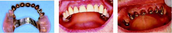 | Телескопическая работа после долгих лет. службы.. При введении в полость рта обнаруживается отсутствие фиксации. Общая ситуация перед перебазировкой. |