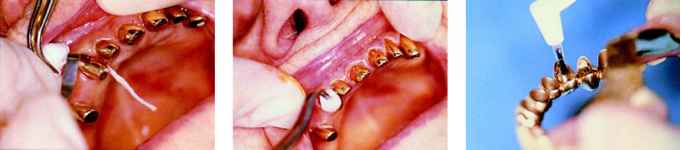 | В области десневых карманов используют, ретракционные нити. Поверхность первичных телескопов Тонким слоем геля протравливают изолируют, вазелином. внутреннюю поверхность коронок. |