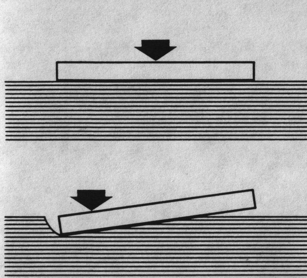 Нагрузка на базис по его середине не вызывает процессов атрофии, но при ее воздействии на край базиса могут возникнуть повреждения альвеолярного отростка. При этом та же нагрузка концентрируется на малой площади и в этом участке происходит атрофия альвеолярного отростка, «погружение» края протеза.