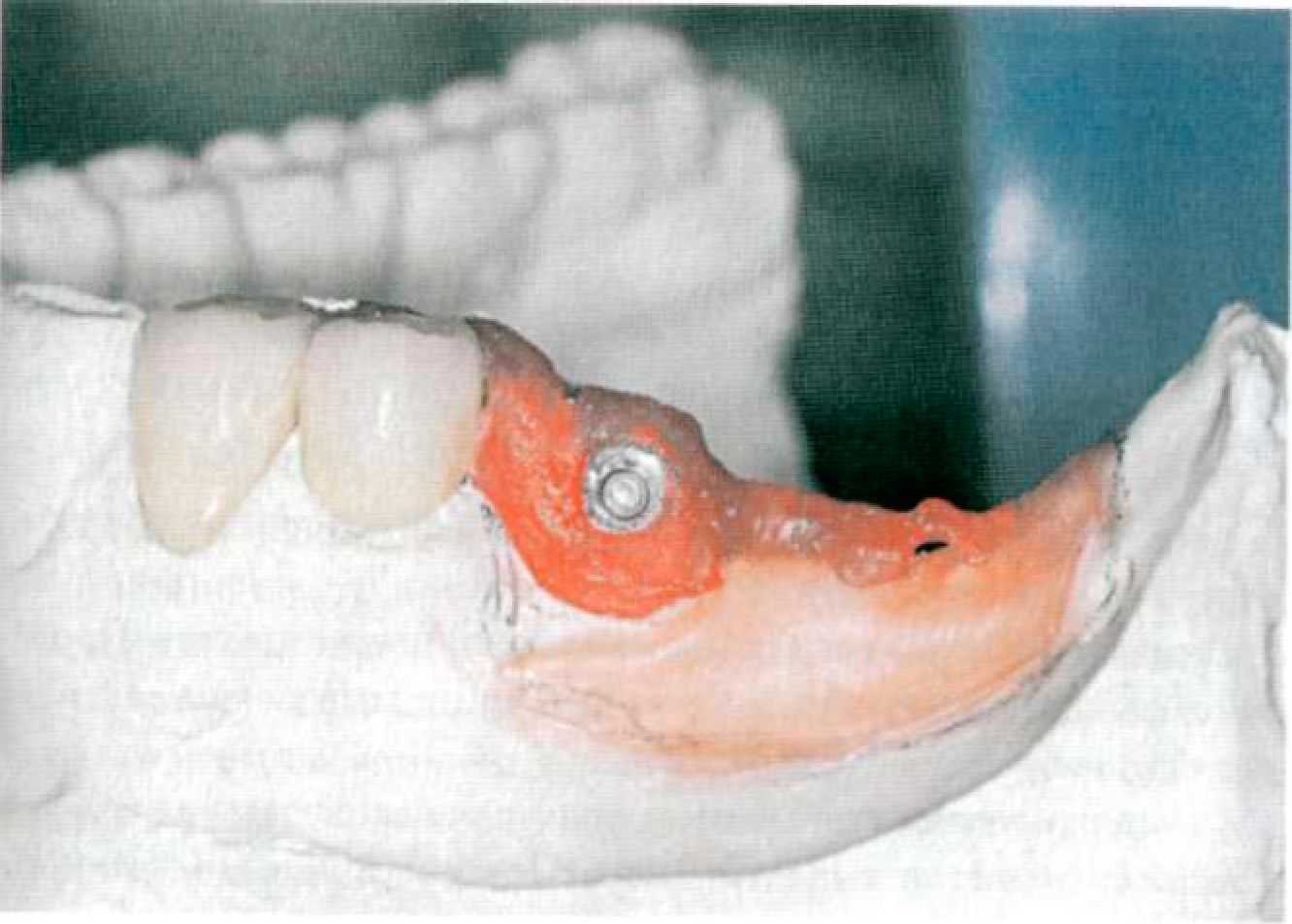 | КЛИНИКО-ЛАБОРАТОРНЫЕ ЭТАПЫ ИЗГОТОВЛЕНИЯ КОМБИНИРОВАННОГО ПРОТЕЗА С ЖЕСТКИМ ЗАМКОВЫМ КРЕПЛЕНИЕМ Этап 1. Протезирование комбинированными протезами начинается с обследования, постановки диагноза, составления плана лечения. Для составления плана лечения изготавливают диагностические модели для оценки вертикального расстояния между зубными рядами, длины опорных зубов, плоскости окклюзии, топографии дефекта. Далее определяют центральную или привычную окклюзию, фиксируют модели в артикулятор для изучения пространства и места для расположения аттачмена между зубами-антагонистами (в случае использования экстракоронарного аттачмена). После выбора подходящего аттачмена проектируют конструкцию протеза на диагностических моделях. Для клинической ситуации, представленной на рисунке 103, было выбрано замковое крепление МК— 1. Предостережение. Последовательность клинико-лабораторных этапов приводится на примере замкового крепления МК—1. Для определения лабораторных этапов работы с другими замковыми креплениями используйте рекомендации фирмы-производителя.