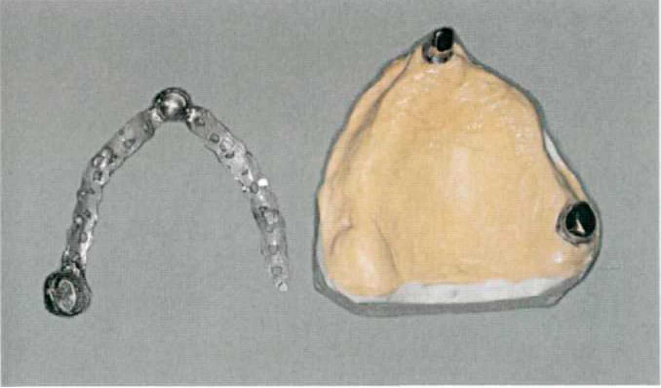 Покрывной протез с телескопическими фиксаторами с фрикционными штифтами