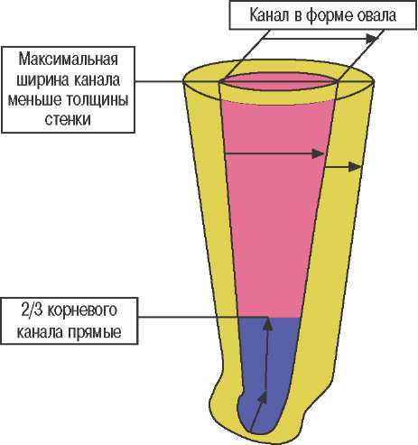 отличную от круглой форму в плоскости поперечного среза. 3. Зубы со значительным разрушением коронковой части, где наблюдается отклонение центральной оси коронковой части от корневой более 5°, но не более 15°. 4. Зубы фронтальной группы, требующие армирования и восстановления коронковой части, при глубоком резцовом перекрытии (глубокий прикус). Требования к корню при изготовлении цельнолитой культевой штифтовой вкладки (рис. 2): 1. Корень должен быть устойчив, иметь достаточную длину - не менее 16 мм. 2. Соотношение будущей культе-вой части вкладки к длине корня должно быть минимум 1:1,5 и стремиться к 1:2 - 1:3. 3. Стенки корня не должны быть разрушены кариозным процессом и имеют достаточную толщину - не менее 1,5 мм. 4. Минимум 16 мм корня (устьевой и средней трети) должны быть прямыми, однокорневые и многокорневые зубы соответственно - минимум 10 мм. 5. Апикальнальная часть корня на 3-5 мм тщательно обтури-рована. 6. Отсутствие резорбции альвеолярной костной ткани, здоровый пародонт или отсутствие острого течения воспалительного процесса пародонта. При отсутствии параллельности продольных осей культевой и штифтовой части вкладки и имеющейся подвижности более первой степени корень не может использоваться под цельнолитую культевую штифтовую вкладку. В своей повседневной практике при необходимости армировать разрушенный зуб и восстановить культевую часть с целью дальнейшего протезирования коронками, в 70-80% случаев мы используем культевые вкладки. Чаще всего в нашей клинике применяется прямой метод изготовления ЦКВ. Мы считаем, что именно прямой метод дает возможность изготовить вкладку наиболее точно. Качество конечного результата применения данного метода может гарантировать только использование беззольных пластмасс, например GC Pattern Resin (GC, Япония), и ни в коем случае не моделировочного воска. В нашей практике именно GC Pattern Resin позволил нам в свое время вернуться к ЦКВ и практически отказаться от применения армирующих штифтов. Методика изготовления ЦКВ После контроля качества эндо-донтического лечения по рентгеновскому снимку мы определяем допустимую длину внутрикорне-вой части культевой вкладки, апикальная часть корневого канала на 3-5 мм должна оставаться обтурированной гуттаперчей. На установленную глубину корневой канал освобождается от корневой пломбы, стенки корневого канала обрабатываются слегка на конус, избегая чрезмерного расширения. Минимальный диаметр штифтовой части ЦКВ должен составлять 1,5 мм. Толщина стенок корневого канала, как говорилось выше, остается минимум 1,5 мм. Существующие поднутрения стенок корневого канала в верхней трети обрабатываются параллельно основному каналу, снимаются нависающие края. Это способствует повышению устойчивости вкладки к ротации в дальнейшем. Если осталось хотя бы незначительное количество твердых тканей зуба выше уровня маргинальной десны, то можно сформировать на твердых тканях корня уступ под 90° (рис. 3).