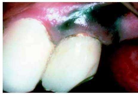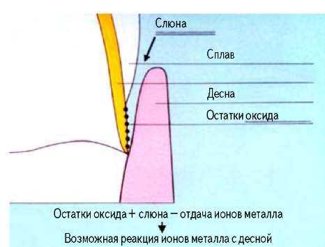 ![]() | Рис. 10. Патологическое изменение десны вследствие побочного воздействия сплава из NiCrMo. |