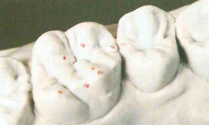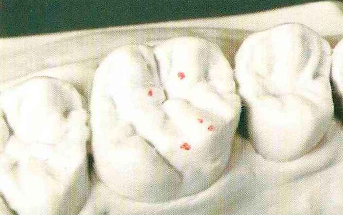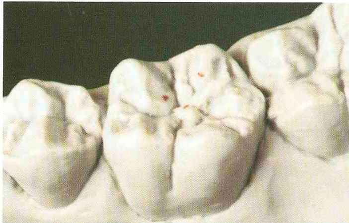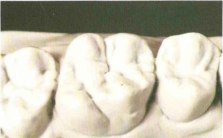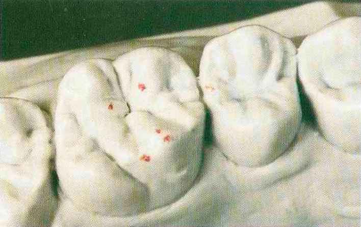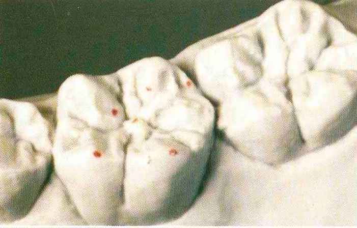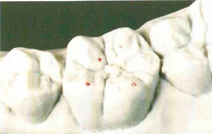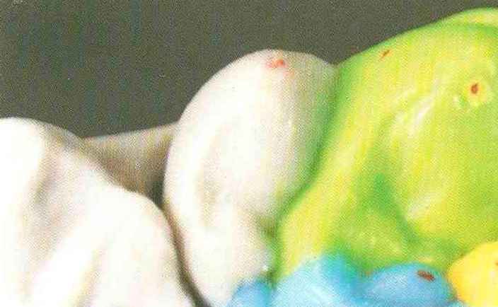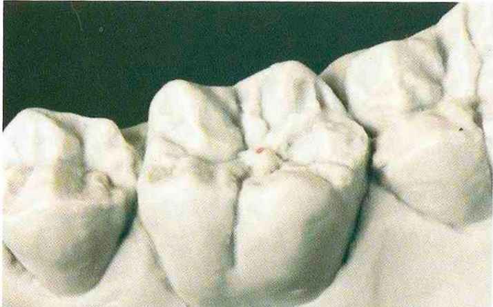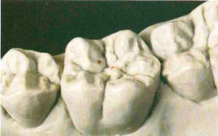 Рис. 135. Ок-клюзионный вид медиального щечного бугорка верхнего моляра после завершения моделирования |
