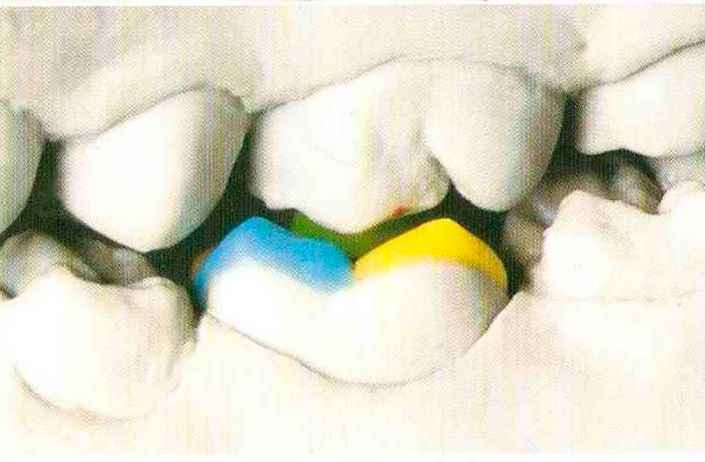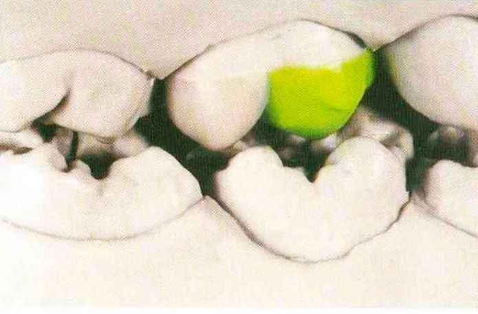 Рис.129. Окклюзионные контакты. Вид с щечной стороны |