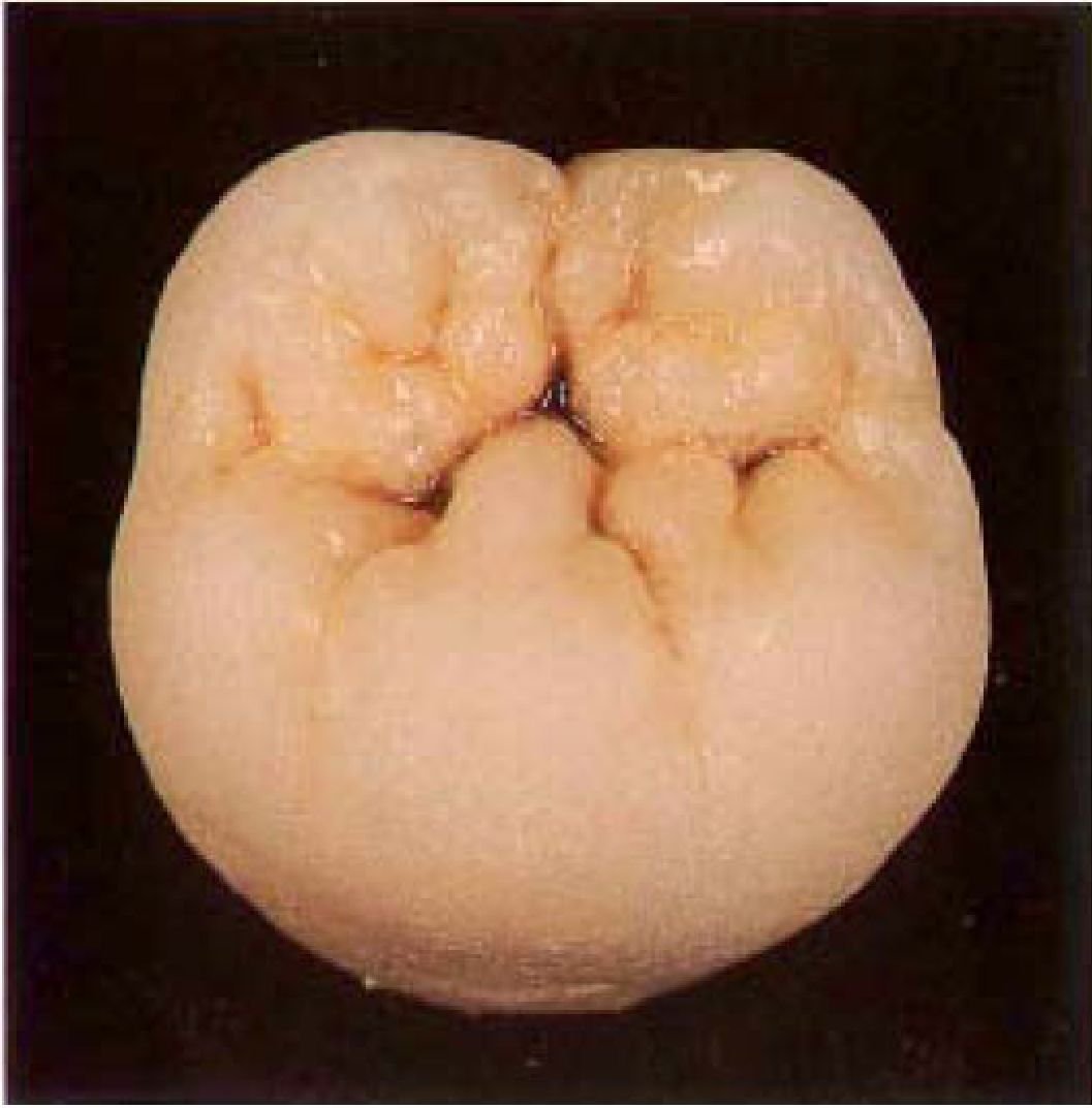 Рпс. 4. Участки, окрашенные в коричневый и черный цвета, отделяют белой интенсив-массой. Это усиливает глубину, что очень хорошо для общего пластического впечатления, особенно при оформлении плоских жевательных поверхностей.