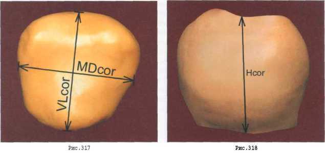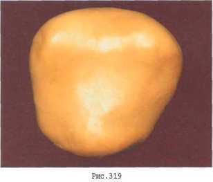| МОДЕЛИРОВАНИЕ ВТОРОГО МОЛЯРА ВЕРХНЕЙ ЧЕЛЮСТИ Учитывая морфологическое строение коронки верхнего правого второго моляра, а также его размерные характеристики делаем заготовку предполагаемой модели из материала пластилин (рис. 317, 318) выдерживая следующие соотношения:
