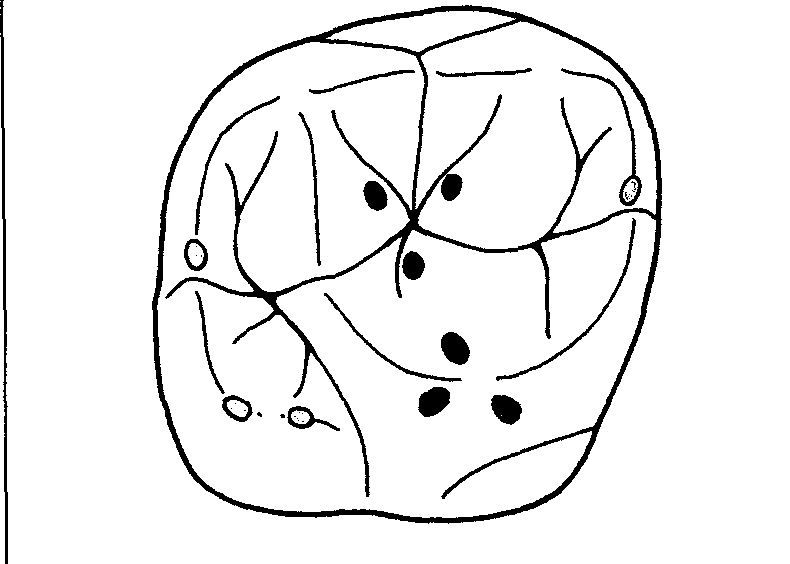 Верхний правый первый моляр Верхний правый первый молярОкклюзионные контактыОкклюзионный вид зуба и межзубные контактыПути перемещения верхушек бугорков антагонистов при движенияхСкатыВестибулярный вид зуба и межзубных контактов Проксимальный вид Назад Вперёд