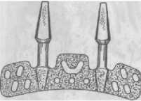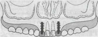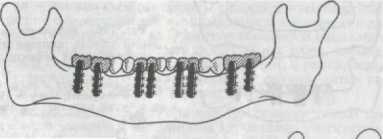 (рис. 274). В дальнейшем необходимо изготовить шаблоны будущих протезов, которые позволят точно определить количество и место расположения имплантатов, смоделировать окклюзионные контакты. С помощью этих шаблонов выбирают ортопедическую конструкцию и определяют количество опор. Для точного определения толщины альвеолярного отростка в месте предполагае -
