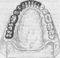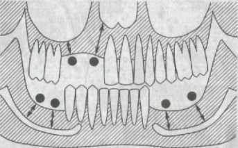 При недостаточности физиологических резервов пародонта, что наблюдается при значительном поражении зубных рядов, для опоры протезов и аппаратов используются беззубые альвеолярные отростки челюсти и твердое небо.