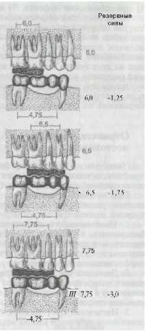 При применении мостовидных протезов резервные силы пародонта используются путем соединения в единый блок зубов, расположенных по обеим сторонам дефекта зубного ряда. При этом изменяются условия нагрузки блоком зубов-антагонистов.