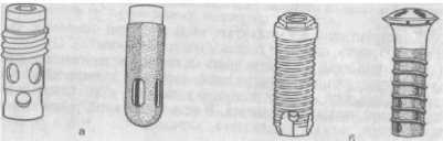 Рис. 282. Имплантаты: цилиндрический (а); винтовой (б).