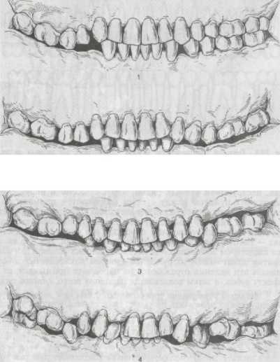 Анализируя схему, приведенную на рис. 300, можно установить, что опорные зубы протеза при дроблении пищи испытывают давление от одного до четырех зубов-антагонистов, т.е. пародонт опорных зубов, несмотря на то что он нагружен искусственными зубами, при участии в дроблении пищи малого числа зубов-антагонистов сохраняет резервные силы. Последние используются полностью в случае, если в дроблении пищи принимают участие все антагонисты. При этом пародонт опорных зубов работает на пределе своих физиологических возможностей и не может ответить адекватной реакцией на повышенное давление. Оно должно восприниматься как травматическое, однако этого не бывает, так как регулирование сил давления на опорные зубы и зубы-антагонисты осуществляется рецепторным аппаратом пародонта, если в нем нет каких-либо нарушений. Условия нагрузки пародонта блокированных зубов и зубов-антагонистов блокированными зубами зависят от состояния антагонистов (числа и состояния их пародонта).