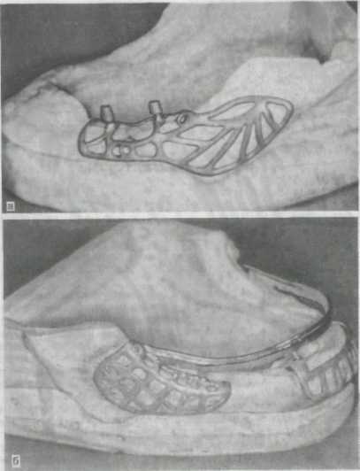 Первая группа— протезы, опирающиеся на зубы, — консольные и мостовидные, протезы, передающие нагрузку физиологическим путем через пародонт (рис. 298,а).