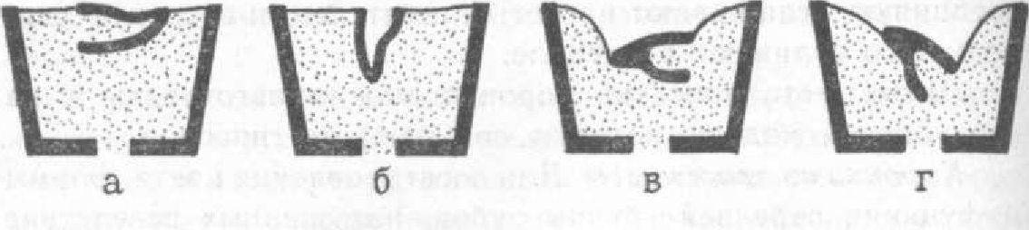 а — вестибулярной поверхностью оннз: б— вертикальное положение, а — вестибулярной поверхностью вверх; г — наклонное положение