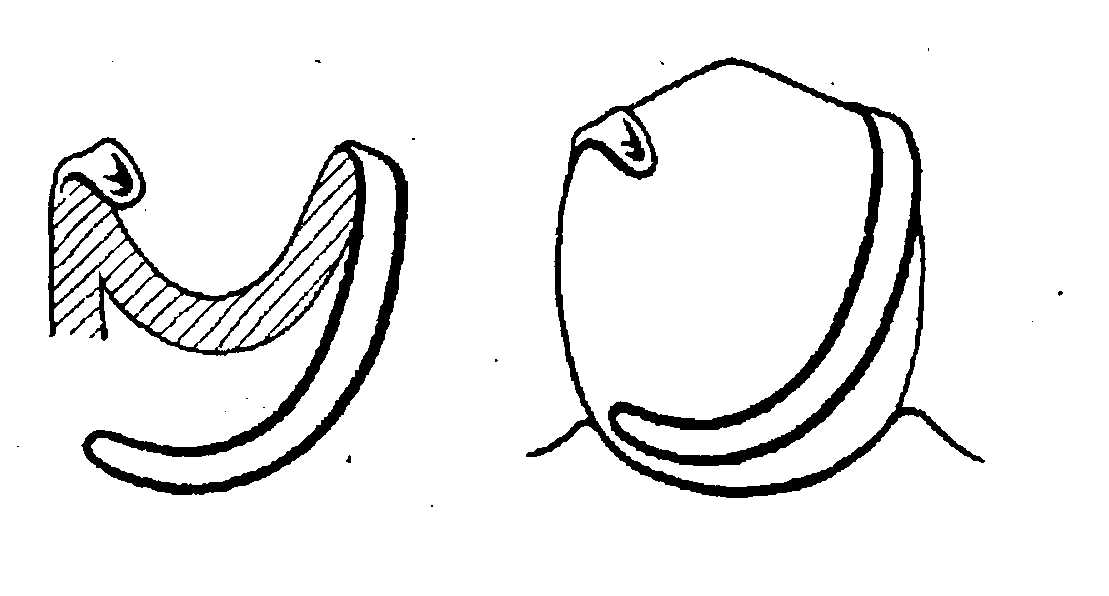 Рис. 21. Кламмер противоположного заднего действия (вестибулярный однотечий кламмер).