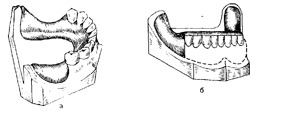 В руководимой нами клинике было проведено специальное исследование (Погодин В. С., 1975) 150 больных (106 женщин, 44 мужчины) с концевыми изъянами зубного ряда нижней челюсти. Складки слизистой оболочки, затрудняющие протезирование, были обнаружены у 31 больного (20,7%), т. е. у каждого пятого больного.