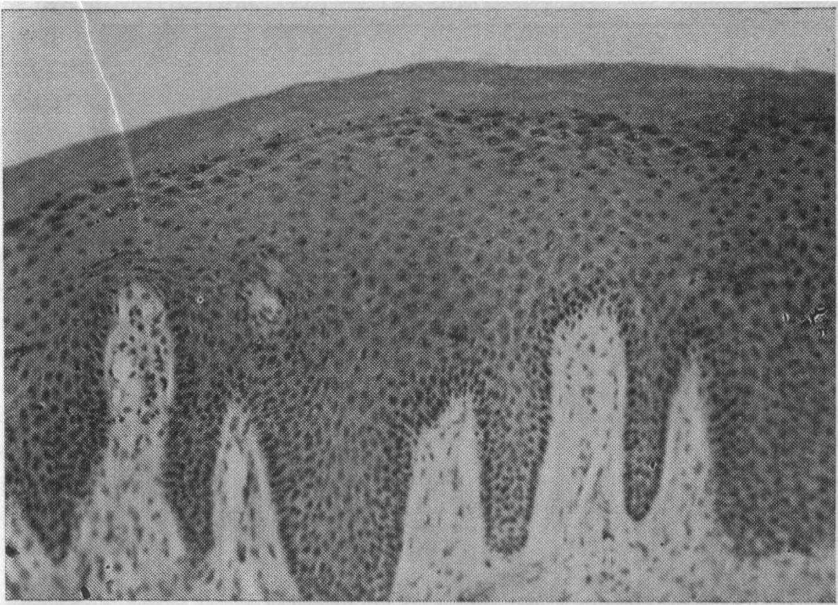Рис. 11. Паракератоз в эпителиальном пласте слизистой оболочки.