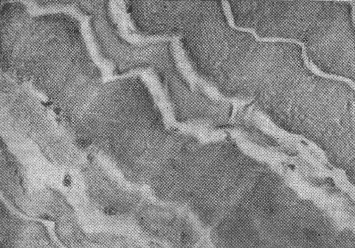 В мышечных волокнах при длительном повышении межальвеолярной высоты на 8—10 мм выявляются дистрофические изменения в терминальных нервных структурах. Обнаруженные изменения в нервных элементах являются результатом воздействия раздражителя, каким, несомненно, является растяжение мышцы при повышении межальвеолярной высоты прикуса на 8—10 мм. Следует также учитывать и то обстоятельство, что повышение тонуса собственно жевательных мышц ведет к сдавлению внутримышечных сосудов, затрудняет микроциркуляцию, нарушает отток крови и способствует развитию отека и гипоксии. Это в свою очередь вызывает нарушение электролитного баланса, имеющего важное значение в активности окислительно-восстановительных ферментов (Камененцка 3., 1971), сопровождаясь также перераспределением кислых мукополисахаридов. Значительным повреждениям подвергаются эластические волокна, которые, как известно, не устойчивы к механическим воздействиям, легко рвутся при перенапряжении (Русаков А. В., 1954, и др.), при некоторых других физиологических нагрузках.