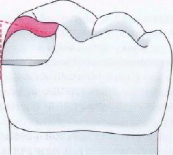 Рис. 10-8, Препарирование ложа для окклюзиоиной накладки начинается с отшлифовывания и закругления средней трети краевого гребни.