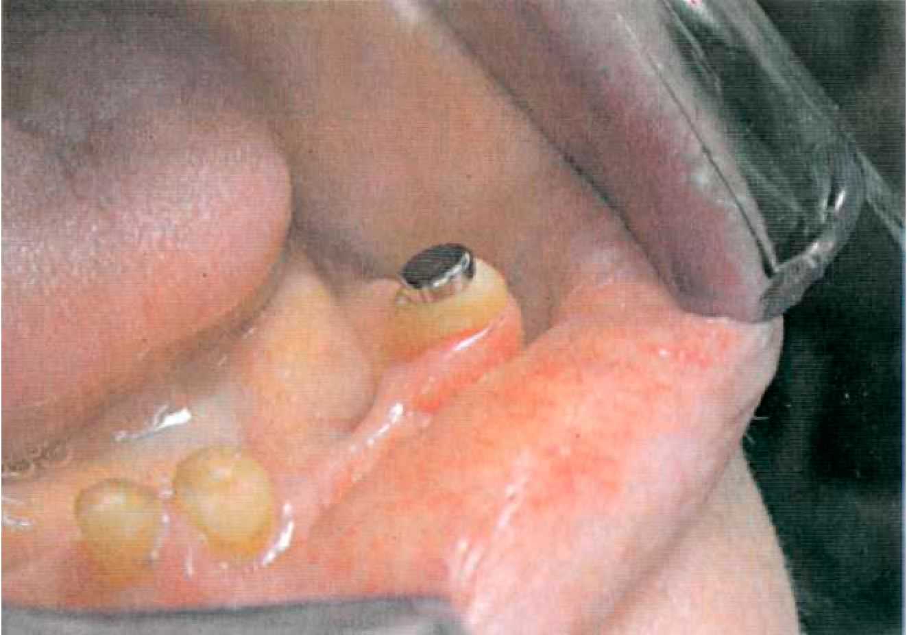 В начале препарирования следует укоротить опорные зубы до 1,5-2 мм (рис.95). Затем распломбировывают канал на 2/3 длины корня. Стандартными развертками расширяют канал и формируют площадку, перераспределяющую жевательное давление (рис. 96). После этого примеряют и цементируют фиксирующие элементы: ретенционные элементы, установленные непосредственно в канал корня, или магнитные фиксаторы (рис. 97).