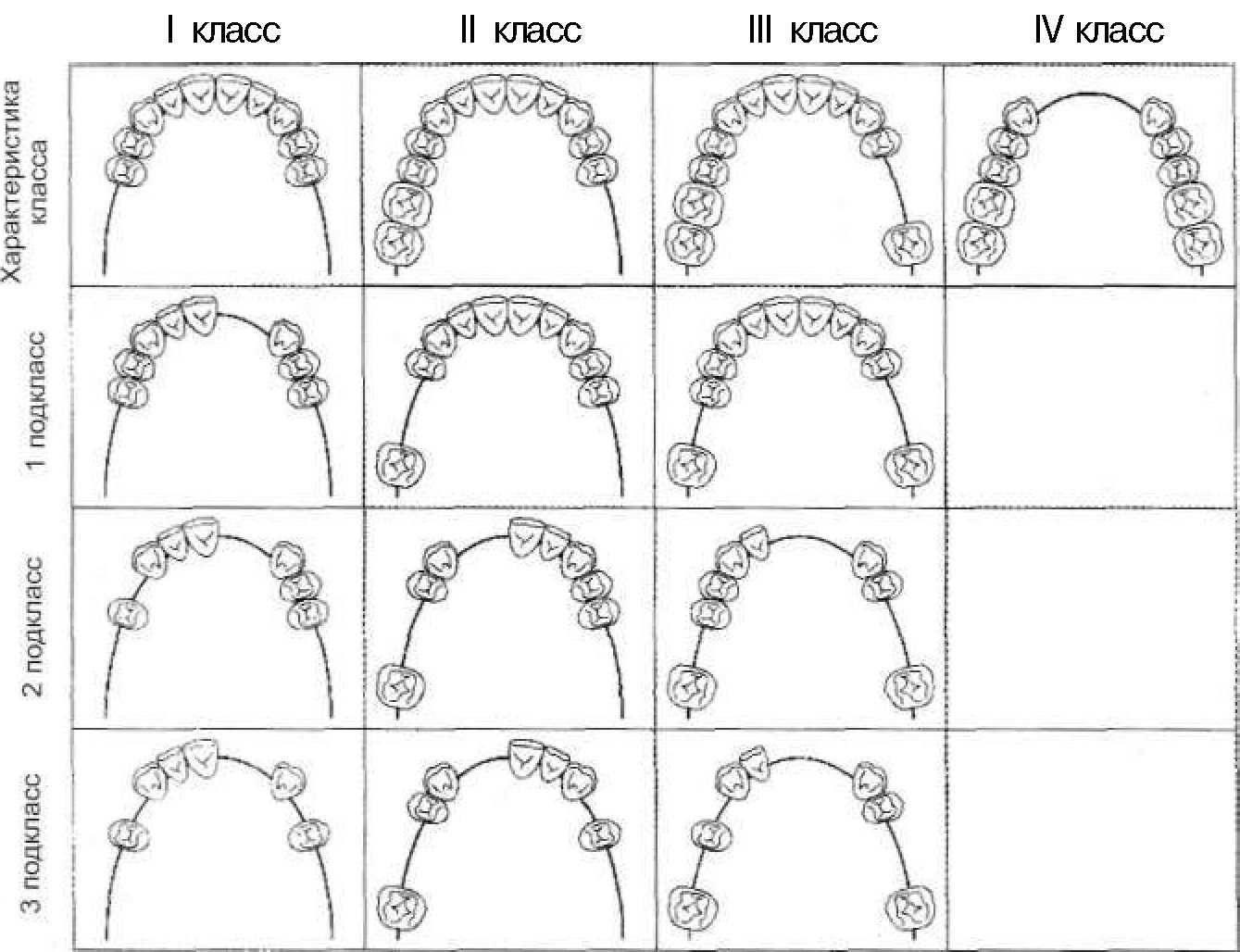 | Рис.328. Классификация дефектов зубных рядов по Кеннеди |