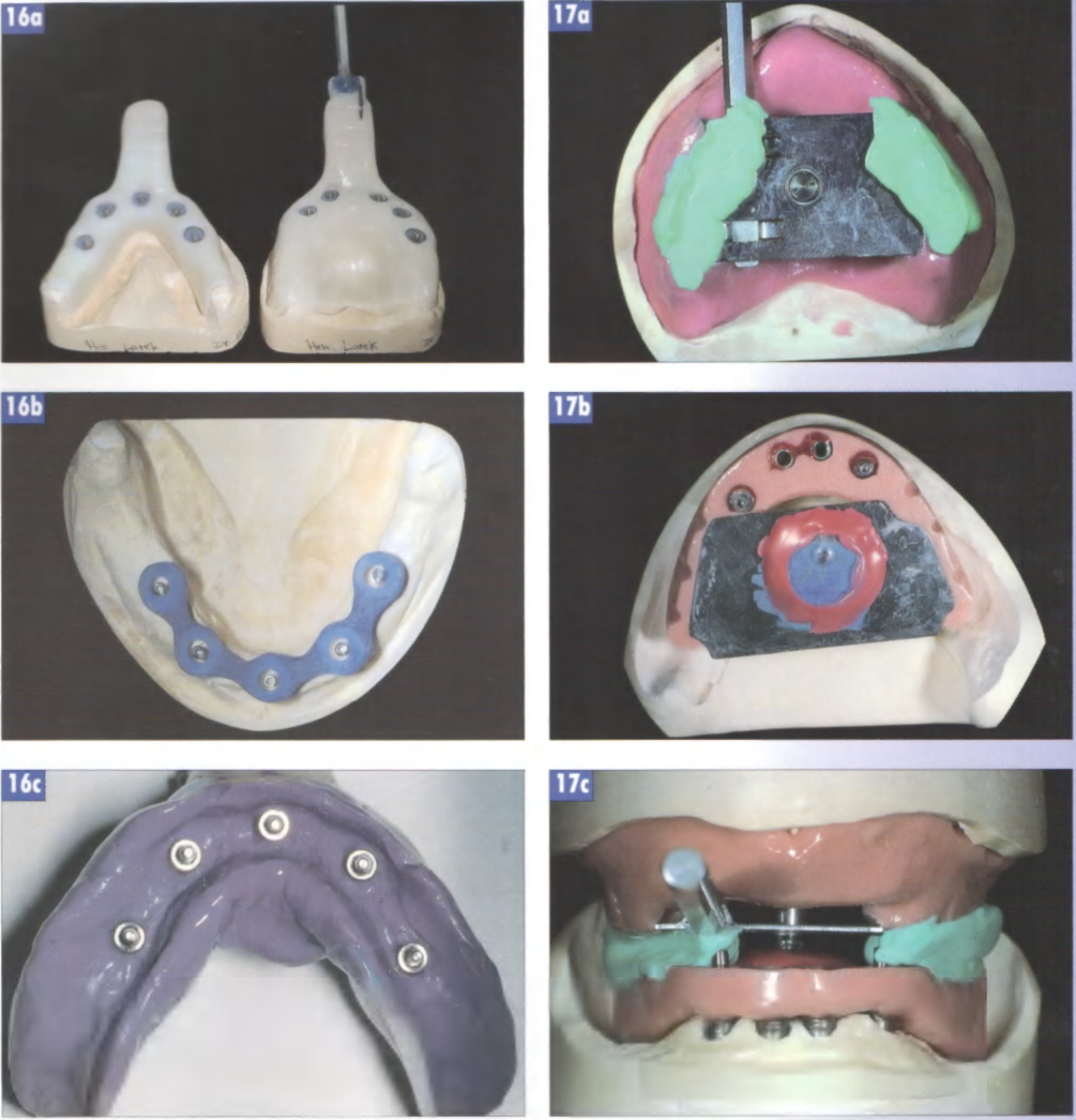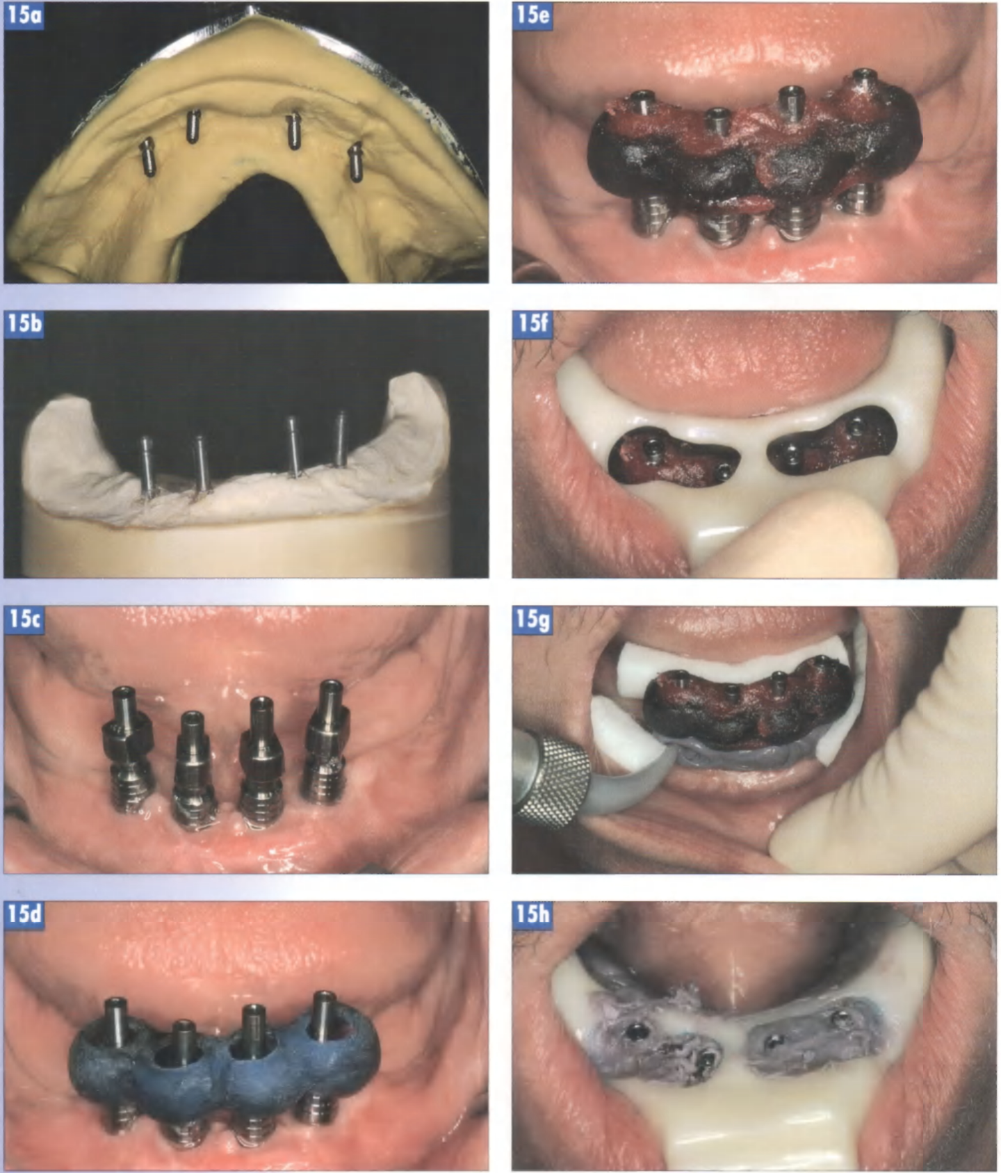 Рис. 15a. Путь к изготовлению оптимального слепка начинается с первичного слепка винтов для фиксации слепочных абатментов ...
