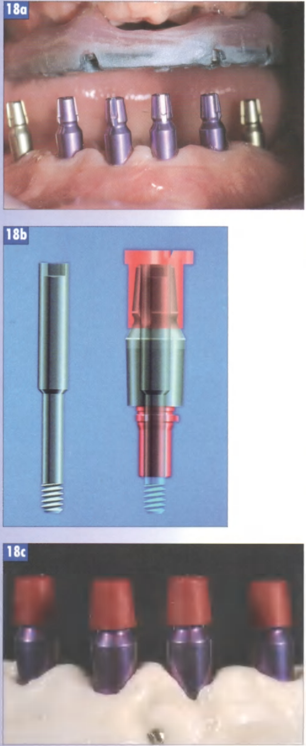Рис. 18а. Современные трансферные абатменты легко устанавливаются на имплантатах и значительно упрощают процесс снятия слепка, а также фиксацию регистрирующих шаблонов CAMlog-System (Altatec, Wurmberg/Гврмания).
