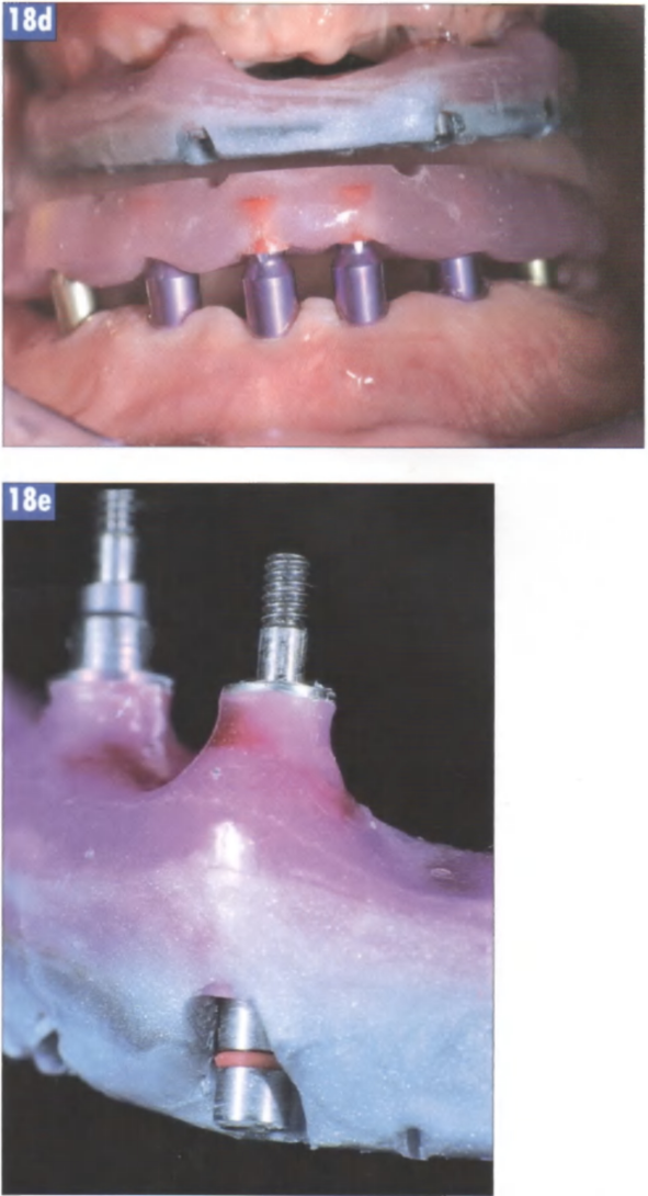 Рис. 20d. Рабочая модель с аналогами имплантатов и съемной десневой маской из полиуретана.
