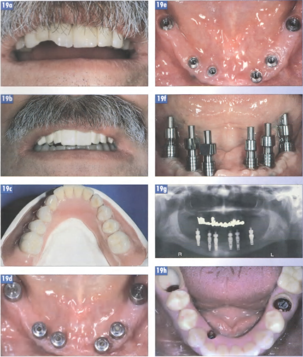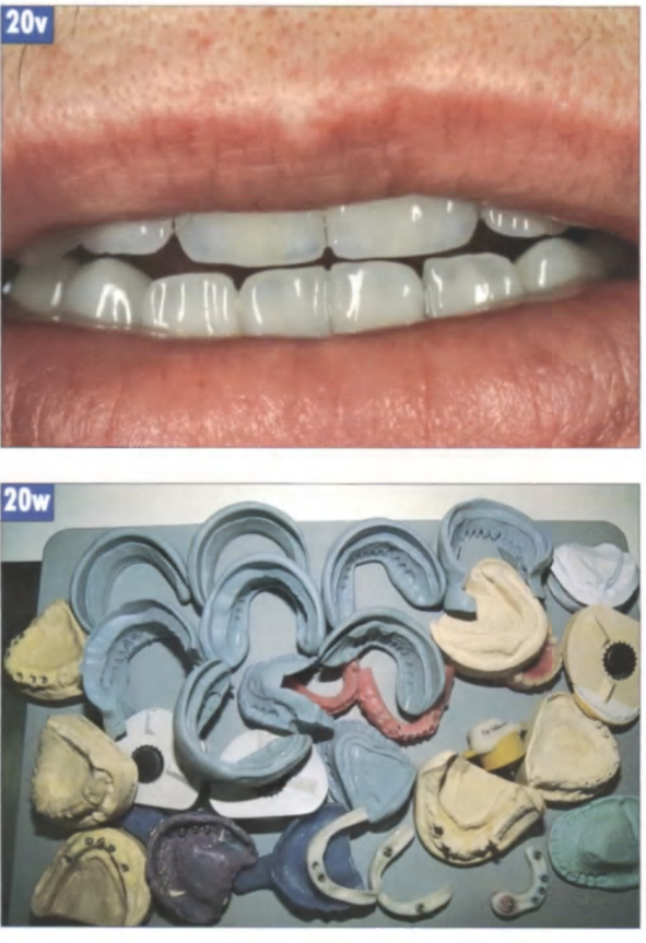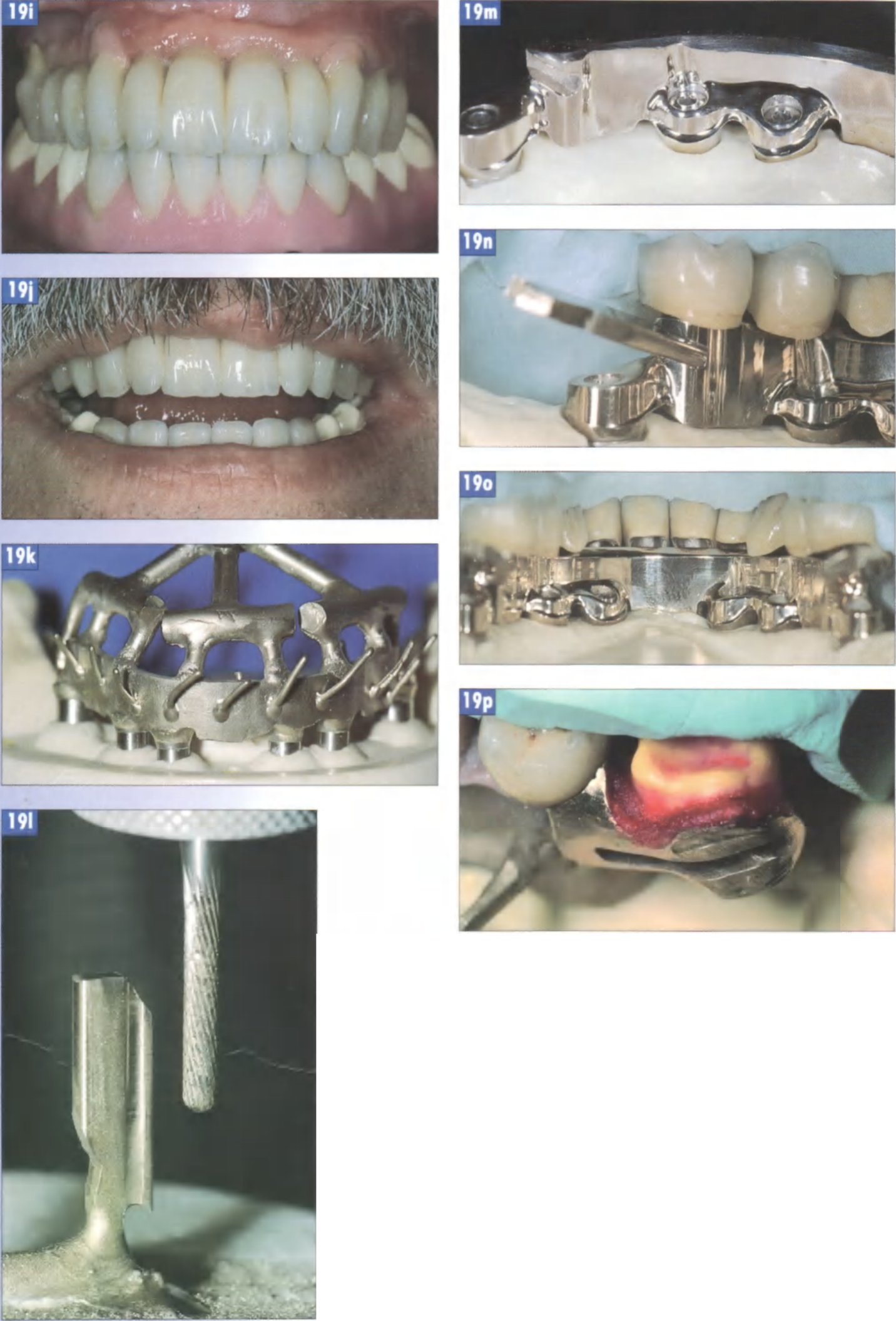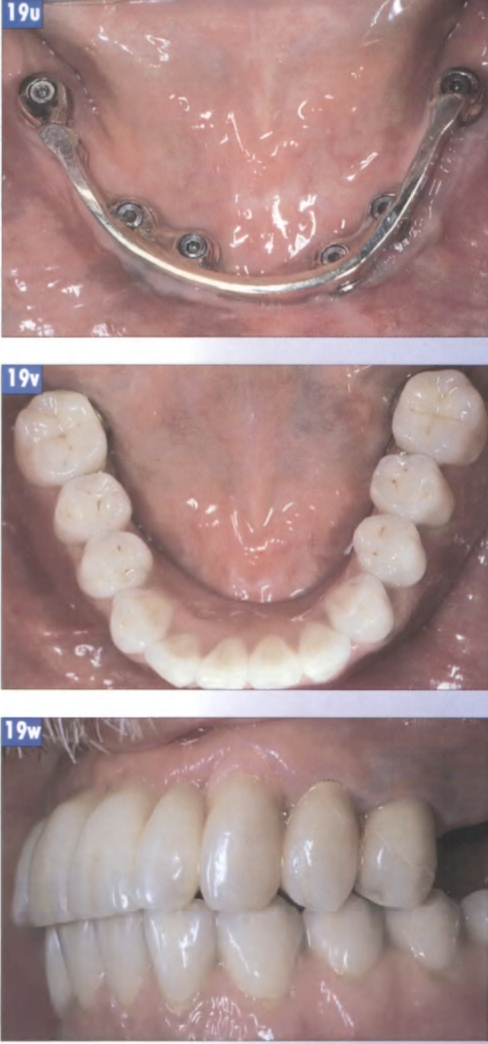 Рис. 19w. Промежуточный результат: новая реставрация с соединительным элементом балка-замок на нижней челюсти и временная реставрация длительного ношения (облицована полимерными материалами) на верхней челюсти.