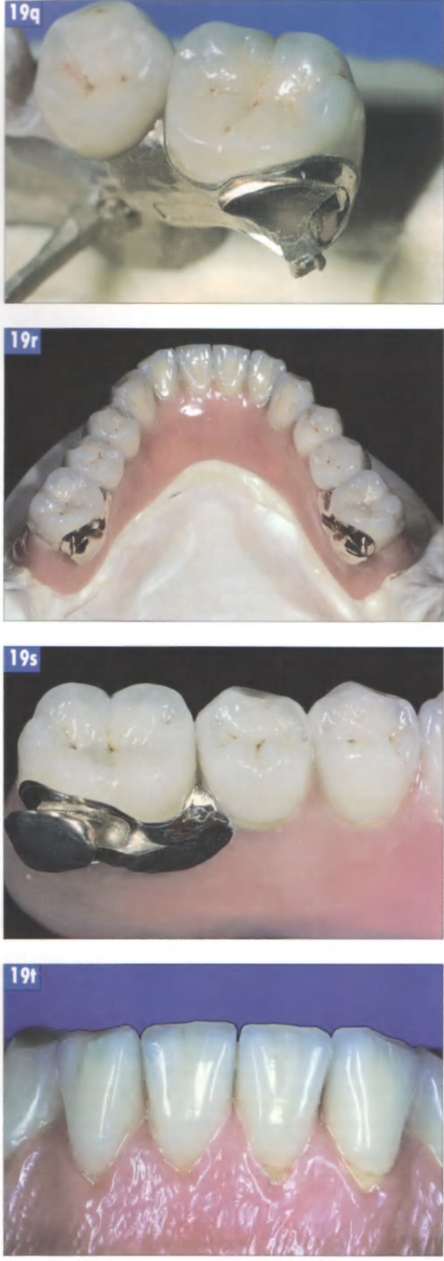 Рис. 19q. Изготовление искусственных керамических зубов требует от зубного техника точного представления о форме и практического опыта послойной облицовки. После изготовления керамические зубы наклеиваются на вторичный каркас. Чтобы предотвратить окисление задвижки при изготовлении открывающей головки, перед моделированием ее нужно покрыть флюсом.