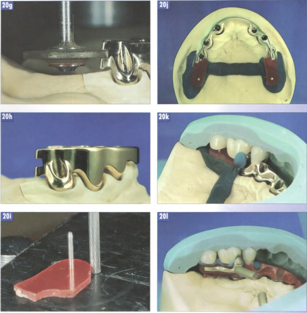 Рис. 20j. Вспомогательная деталь из синей пластмассы точно воспроизводит положение и размеры соответствующего участка Set-up. Она изготавливается на основе силиконового шаблона и обеспечивает точную ориентацию задвижек в пространстве