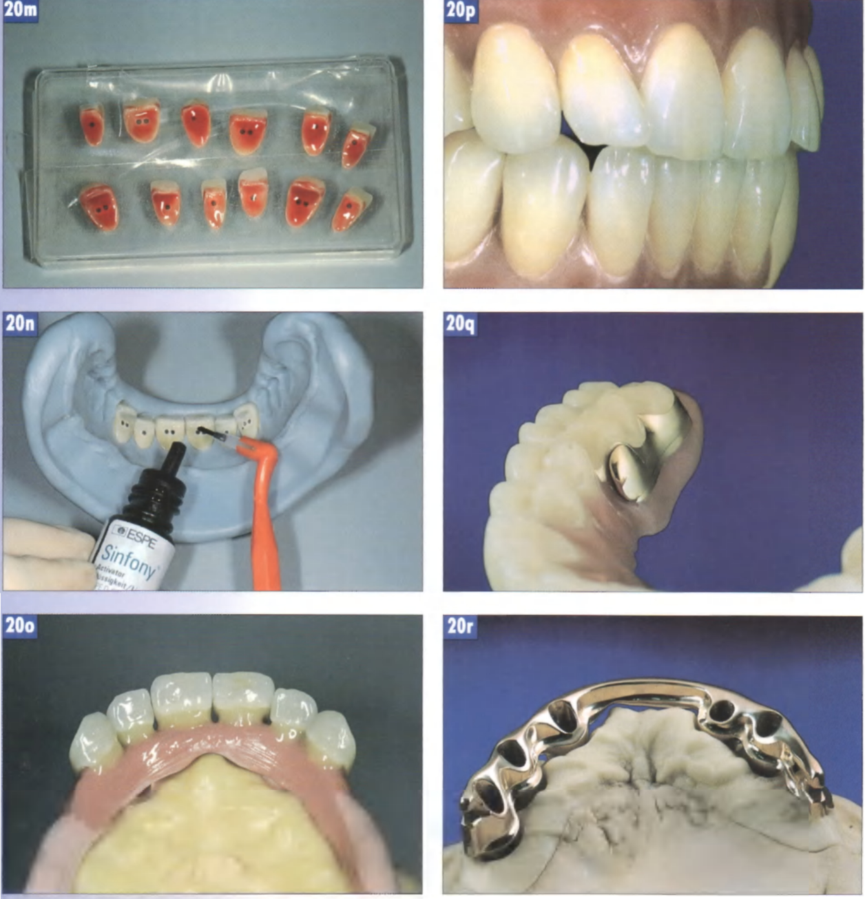 Рис. 20о. Искусственные зубы соединяются с опаковым вторичным каркасом с помощью полимерного материала Espe Sinfonie.