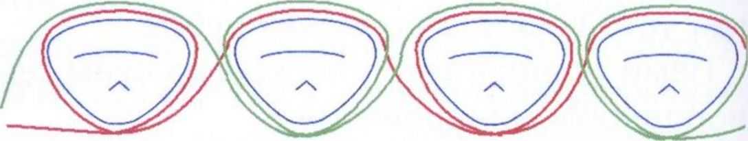Следующий зуб снова охватывается циркулярно с пересечением на оральной поверхности и так далее. На обратном пути порядок меняется и циркулярно охватываются только те зубы, где нить проходила только по вестибулярной поверхности (рис. 4.6).