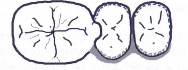 При неподвижных зубах или малой степени подвижности (I-II) по вестибулярной поверхности опорных зубов делается один пропил, расположенный в пришеечной области.