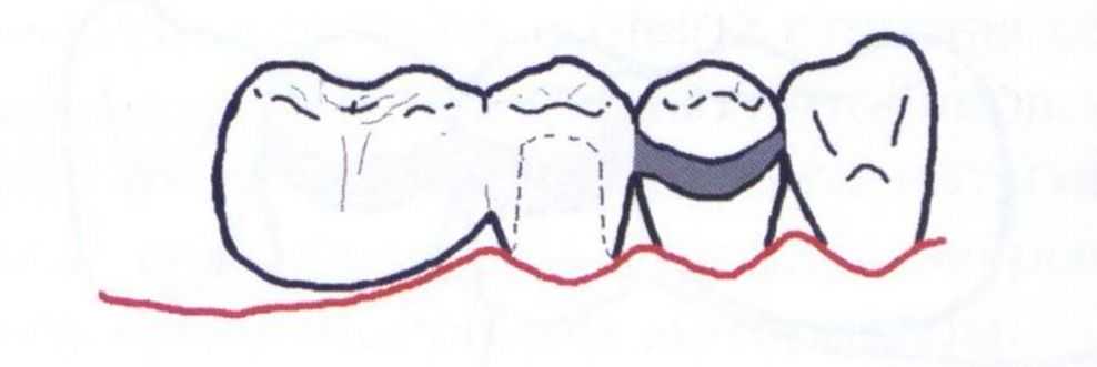 При необходимости распределить жевательную нагрузку ретейнер может охватывать несколько опорных зубов, как показано на следующей схеме.