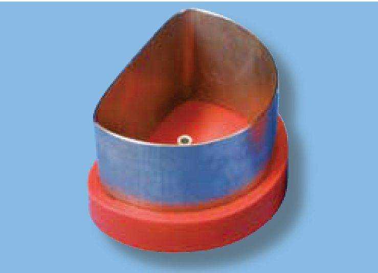 Для того, чтобы формовочная смесь прочно фиксировалась в стальном опоковом кольце, синтетический вкладыш делают несколько короче. Образовавшийся благодаря этому плотный контакт массы и кольца в области цоколя не оказывает влияния на восковую модель во время расширения массы при затвердевании. При укладке синтетической прокладки следует обращать внимание на то, чтобы оно прилегало к стальному кольцу плотно, без воздушных зазоров. Применять на этом этапе работы вазелин не рекомендуется, так как это способствует образованию окалины на стальном кольце, снижает его прочность и долговечность. Для этой цели можно использовать специальные вискозные клеи. Адгезионная прослойка bredent прочно фиксирует синтетическую прокладку к стальному кольцу и без остатка выгорает, сохраняя стенки опоки. При использовании фосфатной формовочной массы ни в коем случае нельзя допускать ее соприкосновения со стальным опоковым кольцом в области расположения восковой конструкции протеза. Иначе в процессе нагрева может отслоиться нижний участок формы (в области цоколя). В этом случае отсутствует трехмерное расширение формовочной массы при схватывании, так как она уже затвердела, увеличившись в объеме при 35° C. Увеличение высоты и ширины трансформируется в увеличение длины, что отрицательно влияет на окклюзионную и линейную точность отливки.