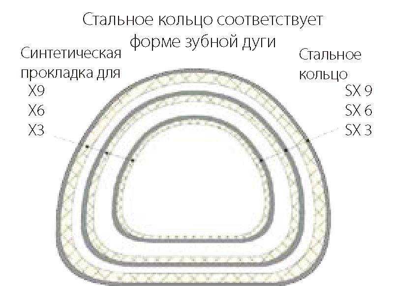 Влияние на затвердевание в процессе нагрева оказывают различные используемые способы формовки. Величина расширения при затвердевании определяется промежутком времени нагревания формовочной смеси во время процесса химического взаимодействия внутри опоки. При температуре 25°C схватывание формовочной массы активируется оксидом магния (процесс экзотермический). Чем раньше достигнута оптимальная температура затвердевания и чем выше конечная температура, тем больше будет расширение при схватывании. Если мы используем силиконовое кольцо, соединенное с силиконовым цоколем, возникает очень высокая аккумуляция тепла вследствие термоизолирующих свойств силикона, и температура схватывания формовочной массы резко значительно повышается. Скорость повышения температуры во время связывания и высокая температура при схватывании массы дают в итоге не только увеличение теплового расширения, но и сводят к минимуму его погрешность. Равномерность передачи давления в силиконовом кольце во время расширения обеспечивает максимально точное трехмерное изменение размеров. Повышенное расширение при схватывании может быть снижено уменьшением концентрации связующего компонента в формовочной массе, а также применением стального опочного кольца с синтетической прокладкой. Для гипсовой и силикатной смеси силиконовые муфели не подходят, так как в них формовочная масса не достигает в процессе нагрева достаточной собственной прочности. Существует опасность, что собранная форма может быть разорвана в процессе литья. При применении стального опокового кольца для формовки смеси, внутрь него необходимо уложить слой синтетического материала. С этой целью можно использовать изоляционные вискозные прокладки для керамики, которые благодаря высокой жаропрочности не сгорают во время нагрева собранной формы. Однако они могут быть использованы только однократно. Синтетические кольца из прокладок для керамики можно не увлажнять для поддержания равномерной и точной передачи давления, так как они не впитывают влагу из формовочной массы после заполнения ею стального опокового кольца. Их укладывают сухими. Между стальным кольцом и формовочной массой в соответствии с величиной формы укладывают соразмерный слой вискозного полотна, чтобы точно распределить давление. В системе «bredent-техника литья по Sabath» форма стальных колец адаптирована к форме зубной дуги, и каждому размеру стального кольца точно соответствует толщина слоя вискозы. Благодаря низкой теплопроводности и точному соответствию толщины слоя изоляционной вискозной прокладки по Sabath, температура схватывания формовочной массы в стальной опоке соответствует температуре при использовании силиконового кольца. Это позволяет достичь высокого и очень равномерного расширения при затвердевании. Изоляционные вискозные прокладки значительно замедляют теплоотдачу при литье, в особенности - при затвердевании отливки, так что очень равномерная температура остывания создает максимально однородную структуру отливки за счет изменения времени кристаллизации сплава в литейной форме.