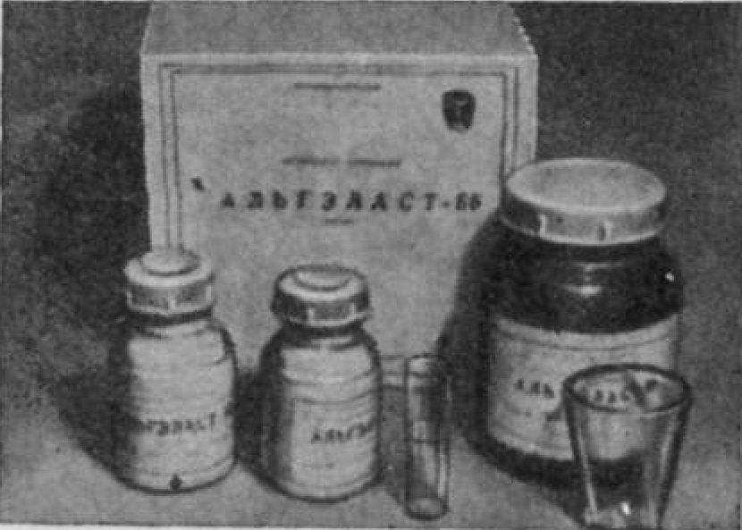 Вторая группа выпускается в виде пасты и порошка, при смешении которых в определенной пропорции образуется паста, отвердевающая при комнатной температуре. К этой группе относится альгэласт-66.