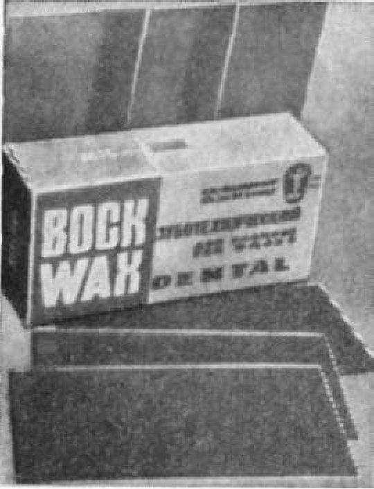 Воск для базисов. Воск для базисов имеет форму пластинок размером 170X80X1,8 мм (рис, 25). В его состав входит 78% парафина, 22% пчелиного воска, 0,004%.