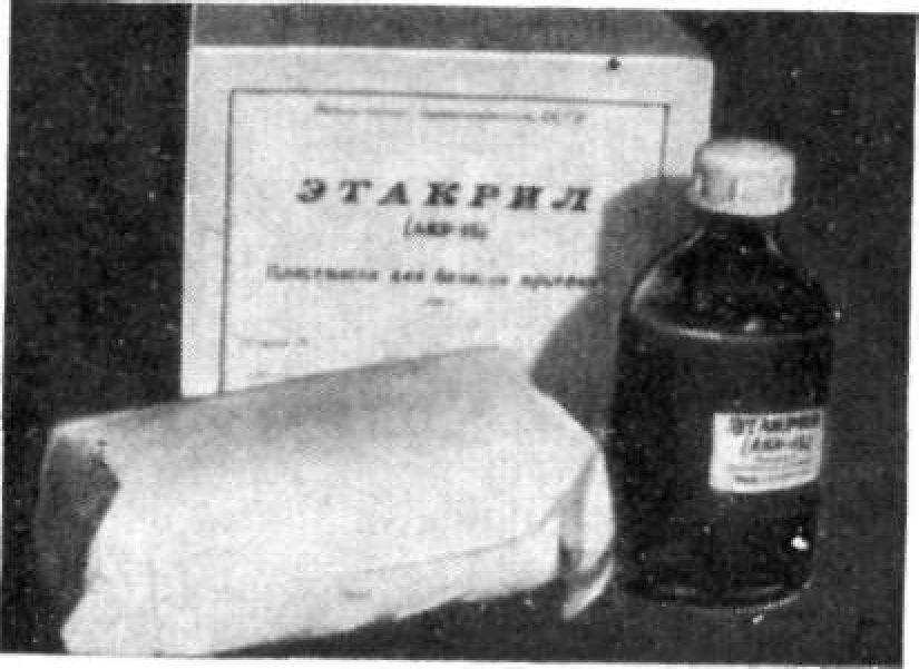 Состоит пластмасса из порошка и жидкости, к упаковке прилагается разделительный материал — лак (рис. 33).