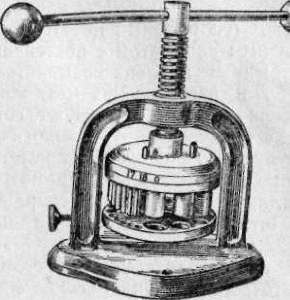 Каретки приводятся в движение за счет червячного винта, а в аппарате системы «Самсон» — рычажно-шестереночной передачи. Во время перемещения каретки пуансоны входят в отверстия плашки. Если поместить металлический диск над отверстием № 1 и прижать пуансоном, получается гильза. Затем ее размер по диаметру постепенно уменьшают до нужной величины, перемещая с одного пуансона на другой, меньшего диаметра.