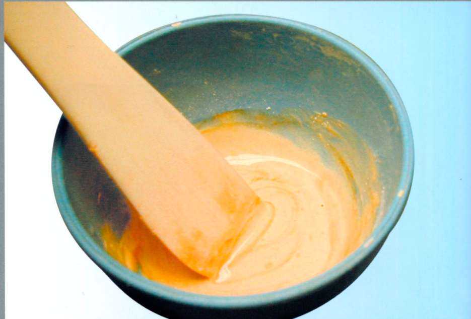 Замешиваем гипс IV класса. Замешивание гипса лучше производить в вакуумном смесителе. Это обеспечивает гомогенную структуру материала без включений пузырьков воздуха, которые в дальнейшем делают модель пористой. Если вакуумного смесителя нет, то замешиваем гипс в резиновой чаше. Замешивание гипса вручную может приводить к неоднородности гипса и образованию в нем пузырьков воздуха. Перед заливкой в области концевых краев оттиска с помощью многоразового силикона оформляем ограничители для гипса. Замешанный гипс заливаем в оттиск до его границ. На данном этапе используем вибрационный столик. Он может быть различных размеров и,как правило, обеспечивает два режима вибрации. Благодаря вибрации, гипс равномерно и точно заполняет оттиск.