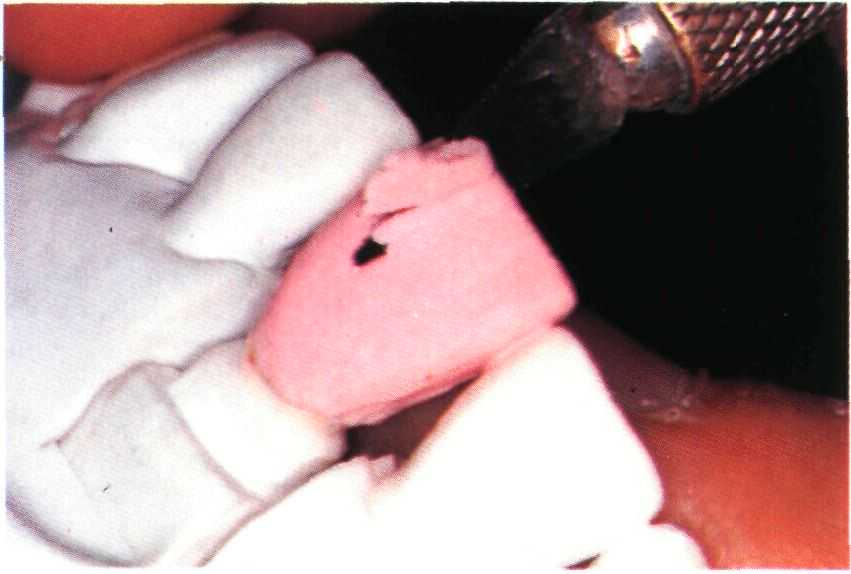 Рис. 59с. Вид коронки со стороны режущего края после срезания массы с вестибулярной поверхности.