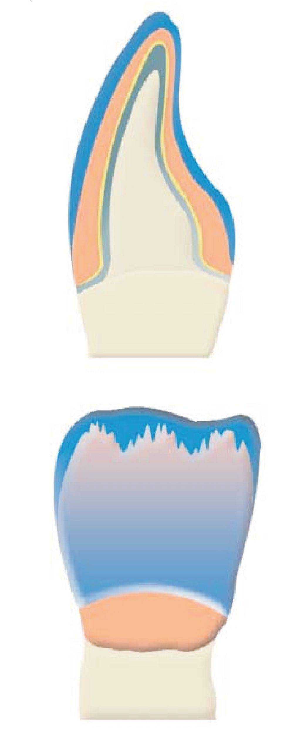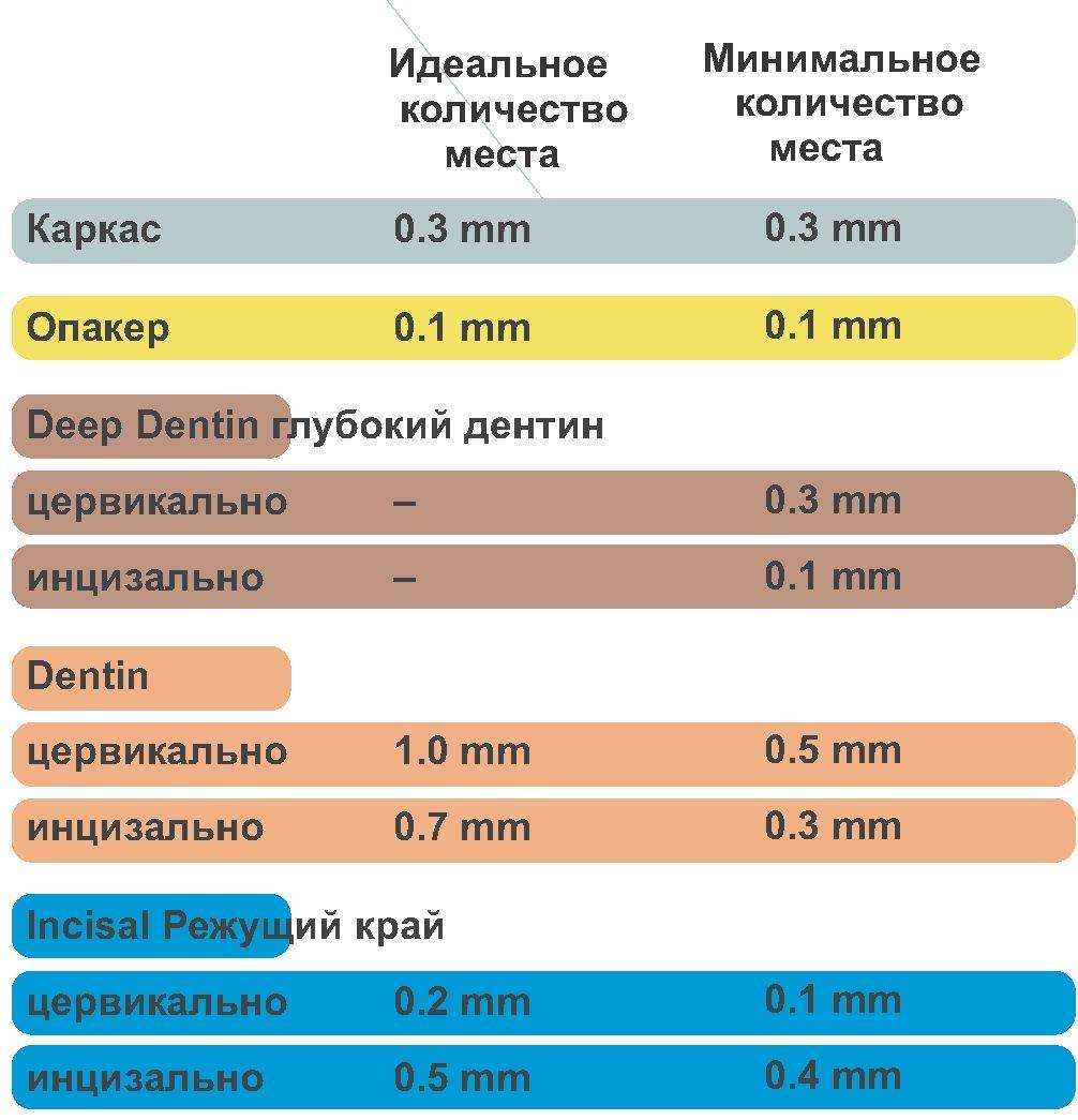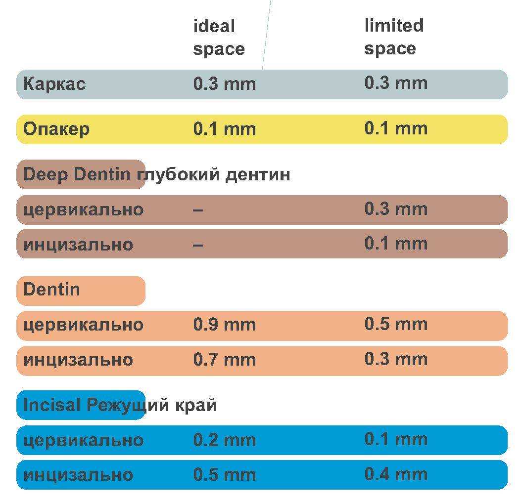 При наслоении A-D достаточно нанесения массы режущего края до середины цервикальной трети. Все данные являются нормативными величинами.