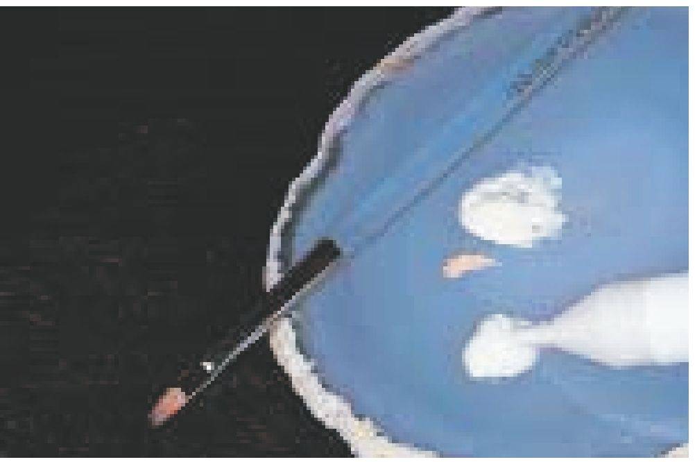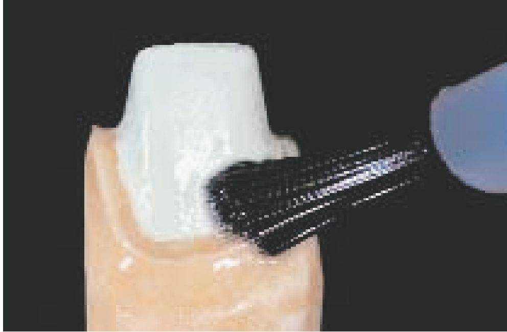 Нанести первый слой опакера (Wash) с помощью кисточки, слой должен быть очень тонким. Следите за тем, чтобы неровности и шероховатости на поверхности металла были хорошо заполнены, поскольку Wash является самой важной частью адгезии металла с керамикой.