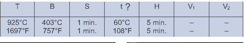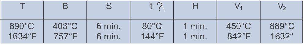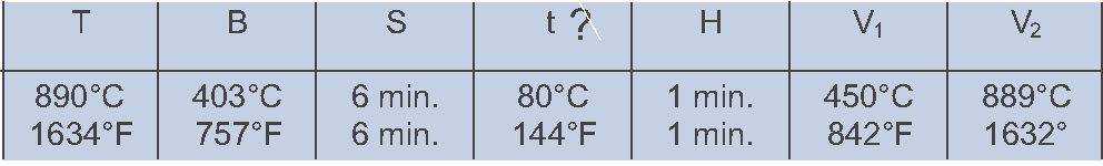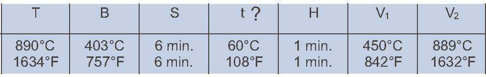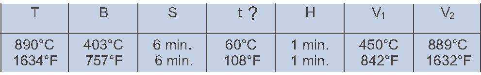 S = Dry time H= hold time a top temperature.