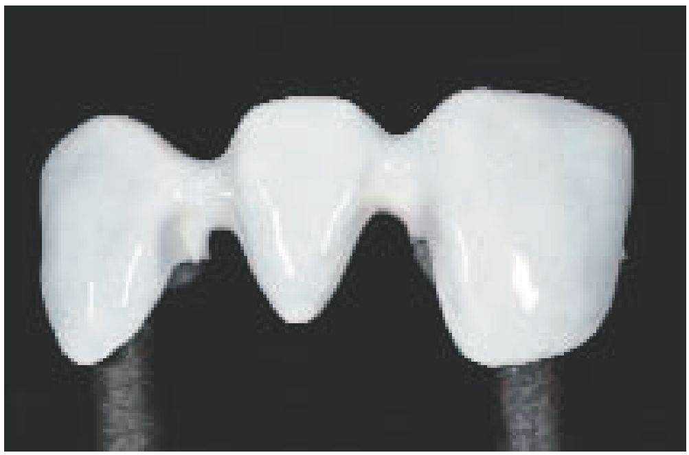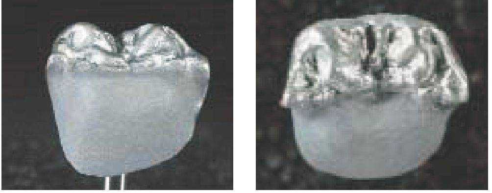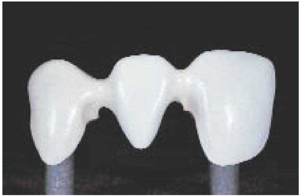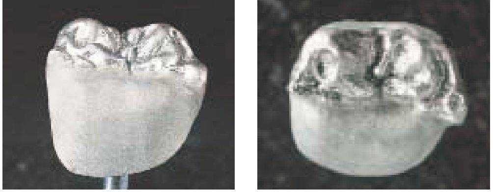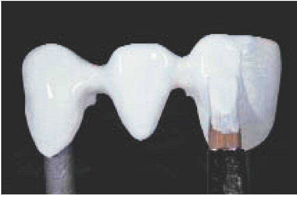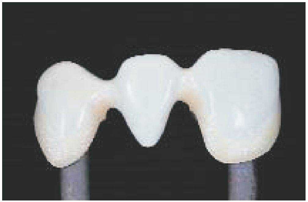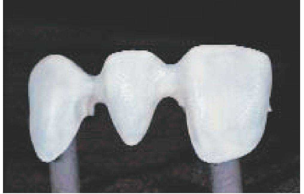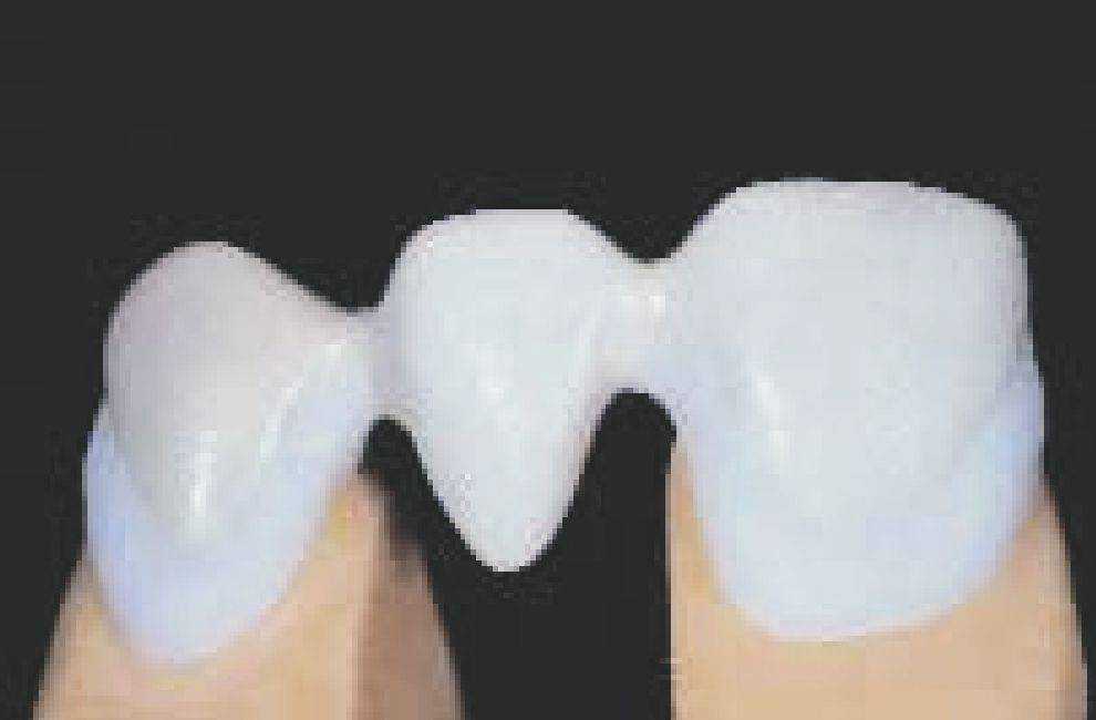 Каркас воссоздает уменьшенную анатомическую форму зуба (моделирование каркаса с учетом формы зуба - см. стр. 24). Благодаря такому моделированию дентальная керамическая масса наносится равномерным слоем и имеет достаточную опору. При этом обязательно должны учитываться требования к работе с соответствующим сплавом (например, стабильность при обжиге).