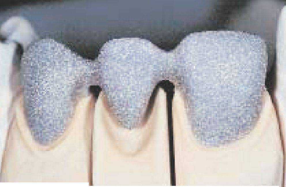 После обработки каркаса производится его тщательная пескоструйная обработка оксидом алюминия AI2O3 тип 100 (специальное средство для пескоструйной обработки Ivoclar Vivadent)...